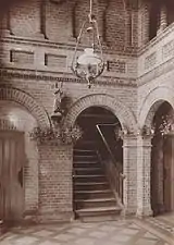 The church is built in red brick. Its colorful interior was painted white in 1959 but the original colors were reconstructed in 2007.