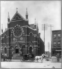 In 1876, the church building was inaugurated and re-dedicated to Saint Augustine. It was a 60-foot building with two Gothic spires, and seating for 2,500 people. In 1928, it acquired property at 15th and S Streets N.W., where it eventually built a new school, rectory, convent, and new church building.[1]