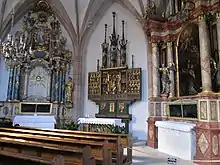 The chapel stands right behind the St. Nicholas' Church, Merano. The layout of the chapel is octagonal. It was built by the architect Hans von Burghausen in 1450, who also designed the Hospital Church.
