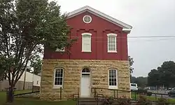 St. Francois County Jail and Sheriff's Residence is a historic jail and sheriff's residence located in Farmington, St. Francois County, Missouri. It was built in 1870–1871, and is a two-story, three-bay, Greek Revival-style brick and limestone building. It has a front gable roof and centered arched front doorway. The building was enlarged slightly around 1909. By 1996, it was one of the oldest operating jails in Missouri,[2] but it was retired in September of that year when the jail moved to a newer and larger facility.[3] The building now serves as a low-cost inn for people traveling along the TransAmerica Bicycle Trail.[4]