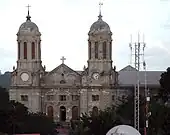 The entrance iron gate from the southern side into the cathedral, which was erected in 1789, is flanked by two imposing statues, one of St John the Divine and the other of St John the Baptist in flowing robes.[6] It is said that these statues were confiscated by the British navy from the French ship Temple in Martinique waters in 1756 during the Seven Years' War and moved to this church.[2][3][6] At the time of erection, the edifice was criticized by ecclesiastical architects as being like "a pagan temple with two dumpy pepper pot towers", however, in more recent times the same edifice has been given the accolade as "the most imposing of all the Cathedrals of the West Indian Province."[2][3]