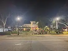 The center of the St. Johns Town Center at night with Maggiano's Little Italy notably on the front