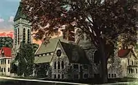 The congregation was established in 1840, and first occupied a small wooden church that located just north of the current site of the Lithgow Library. The present building was built for the congregation in 1886 to a design by architect Richard M. Upjohn. A window honoring Saint Mark from the old church is part of the current church and stands behind the choir stalls.[2] The congregation housed multiple community ministries including Addie's Attic Clothing Bank, Everyday Basics Essentials Pantry and the Augusta Area Food Bank, all of which operate in the adjacent Parish Hall, which was built in 1959.[3]