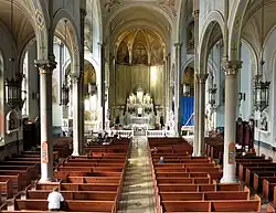 Emanuel Church, the first Catholic parish in Dayton, was formed in 1837.[2]: 357 Many English-speaking families left to form a separate parish in 1846, but Emanuel continued growing to the point that division was necessary by the end of the 1850s. Accordingly, land was chosen on Xenia Avenue at the Allen Street intersection in one of the city's eastern neighborhoods, and the owner donated enough property to permit the construction of a church, rectory, and school.[2]: 358 Archbishop Purcell of Cincinnati laid the cornerstone in April 1859, and the finished building was consecrated by Purcell and Henry Damian Juncker, the Bishop of Alton, in August of the following year. The building measured 110 by 50 feet (34 m × 15 m), but by the opening years of the twentieth century, the parish had outgrown it, and construction began on a new building; Archbishop Moeller laid the cornerstone in July 1905 and consecrated it in November 1906.[2]: 359 Growth continued, and St. Anthony's Church was established in 1913 by families coming out of St. Mary's.[3]