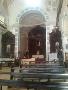 The church, built in the Baroque architectural style, exhibits strong similarity but with better workmanship and design than the Bom Jesus Basilica at Goa built in 1605 AD, which was also built by the Portuguese during their colonial rule of the territory. The interior of the church is decorated with intricately carved woodwork that is considered one of the most elaborate in any Portuguese church in India. Its interior has elaborate and impressive design with delicate volutes (spiral scroll-like ornament) and shell. The front elevation or facade is also said to be the most detailed of all Portuguese churches built in India.[1][3] The altar, which has the image of St. Mary, is carved out of a single piece of Burmese teak and is lined and lit up with 101 candles. Above the altar, there is a "blue-and–white barrel - vaulted nave adorned with priceless old paintings and statues.[5]