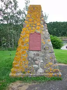 Monument on the site of Denys' post at Saint-Pierre. The south entrance to the Canal is in the background.