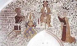 The church's most notable fresco is on the north wall of the chancel. It depicts King Valdemar IV and Queen Helvig. There are several uncovered frescoes in the church by lime painter Morten Maler whose frescoes also appear at Gerlev Church (Gerlev kirke) and Gimlinge Church (Gimlinge Kirke) in Slagelse. [6]