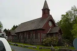 St. Peter's by-the-Sea Episcopal Church, also known as St. Peter's by the Sea or St. Peter's Episcopal Church, is a historic church building at 611 Lincoln Street in Sitka, Alaska. It is a Gothic Revival structure, built of stone and wood, with a modest bell tower topped by a pyramidal roof. The basement and more than half of the main floor's height are fieldstone with timbered elements, above which is wood framing clad in wooden shingles. Three stone buttresses line the side of the church, separating four rectangular windows with half-round windows directly above.[2] The rose window of the church includes a Star of David.[3] The church was built in 1899, and was the first substantial Episcopal church in Sitka, which had previously held services in smaller locations.[2]