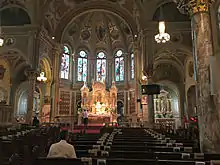 The interior of the church has changed over the years. In 1925, the pastor, Reverend Joseph Janowski, CM, commissioned artist P. Mazur to paint the many frescoes on the interior of the church. Stained glass windows from Aachen, Germany were installed in 1926.