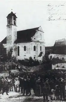 In Frankish times, around the year 800, the first church was built in Amendingen, presumably as a simple wooden building.[2] The parish was first mentioned in a document in 1341, when Heinrich III von Schönegg, Bishop of Augsburg, incorporated it into the Rot an der Rot abbey, which belonged to the diocese of Constance, with the approval of the antipope Nicholas V. The church was then incorporated into the diocese of Augsburg. This meant that the Rot abbey owned half of the major tithe associated with the right of patronage. In 1422, Bishop Anselm von Nenningen imposed an interdict on the parish, which was lifted at the request of the Duke of Teck at the feast of Pentecost.[3] In 1477, the Buxheim Charterhouse bought the other half of the major tithe and thus half of the patronage right. St. Ulrich was first mentioned as patron of the church in 1484. A visitation report of 1575 describes that the high altar had sculptures of Ulrich, Theotokos, and St. Catherine.[4]