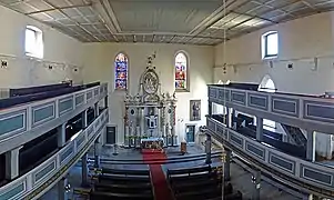 St Andrew's Church was first mentioned in a document in 1182. In 1210, the construction of a new church began, which was completed around 1370. A fire destroyed the church in 1416; it was rebuilt in the later course of the 15th century. Around 1830, the building was modified. It has a flat ceiling with a pointed barrel; a crucifixion relief from around 1370 is emblazoned above the southern main entrance. A stone relief dating from 1450 shows the motif of the Lamentation of Christ.[2] The Reformation was introduced in 1522; since then, St Andrew's Church has been Protestant. In 1604, it merged with the neighbouring congregation of St Maurice's and in 1973 with the congregation of St Michael's Church. Since 1727, a wooden model of the epitaph for Martin Luther has been in St Andrew's Church.[3]