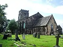 To the east of the chancel there is a small early 19th-century watch and hearse house.[2] It is constructed of ashlar and has a slate roof.[7] The churchyard also contains the war graves of 15 Commonwealth service personnel of World War I, and three of World War II.[8]