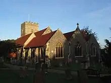 The north aisle dates from the 13th century and the south aisle dates from the early 14th century. However, the church as it can be seen today is largely Victorian, with major restoration by Henry Woodyer in 1852–3 and 1876.[4] Of note is the ornate 17th-century monument to Sir Thomas Rich, now hidden in the base of the tower. In 1853, it was called "the vilest paganism imaginable".[5] There is also a fine series of memorial brasses (largely hidden beneath the carpet). The church is a Grade II* listed building.[1]