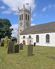 The church is of magnesian limestone construction with both the chancel and nave having been rendered. The pitched roof is tiled in slate. The nave has four bays and is of a simple classical style. The tower has four stages with angled buttresses. The first stage has a single lancet window on each side and a circular window in the second. The third face has a clock face and the fourth stage has louvred lancets in the belfry.[2] The tower has a flag pole.