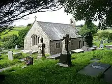 St Cwyllog's Church is in a rural location in the middle of Anglesey, about 3 miles (5 km) north-west of Llangefni, the county town, and a short distance from the small village of Llangwyllog.[4] The village takes its name from the church: the Welsh word llan originally meant "enclosure" and then "church", and "–gwyllog" is a modified form of the saint's name.[5]