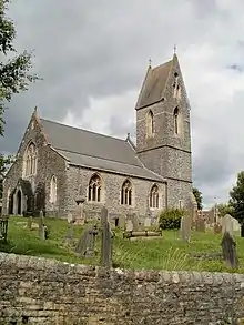 Despite having lost its monastery, the site continued in use as a parish church, and the first mention of a permanent church building on the site dates from the 12th century. The medieval church lasted (after restoration in the 18th century) until 1820, when it was demolished. The building which replaced it lasted in use only for forty years before it was deemed too small and was replaced by the current structure. The 1820–1860 church was dismantled and re-erected at Leckwith, where it was re-dedicated to St James. The building still stands, though has since been converted into a pair of houses.[3] The present St Dochdwy's Church was designed by S. C. Fripp of Bristol and built by David Jones of Penarth for a cost of £2,600. Fripp was inspired by William Butterfield's work on St Augustine's Church in Penarth, which was completed in the same year.[4]