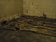 Visitors to the church are also able to enter the crypt below the building. This part of the building has only very dim light in a central part. By carefully exploring a number of darkened cavernous areas, most of which are either barred as if being a part of old gaol cells, or in some cases as clearly exhumed shallow graves, the visitor can find ancient human bones which have been left in the state of their burial or death.