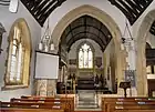 Further restoration took place under James Fowler[2][4] in 1876 when the box pews in the nave were replaced with the current pews and the elevated gallery was removed. The vestry was enlarged and parts of the chancel were rebuilt. The Last Supper reredos above the altar dates from this period while a new pulpit of Caen stone was installed; this has carvings of St John the Baptist in the wilderness, the Sermon on the Mount and Saint Paul in Athens. There are unceiled waggon roofs to nave and south aisle with carved bosses at each of the intersections. The arcade of bays has Pevsner 'B' type piers[4] with leaf capitals to the main shafts.[2][7]