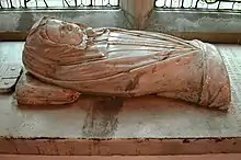 A memorial to Robert Clayton, the baby son of Sir Robert and Dame Martha Clayton, is on a windowsill within the church, in the shape of a sleeping baby. He was buried within the chapel for the manor of Swakeleys in the north aisle. The boy had died a few hours after his birth in August 1665 at Swakeleys House, where his parents were staying as guests of Lady Harrington. Sir Robert was an alderman of London but the couple were staying in Ickenham to escape the Great Plague; he later became Lord Mayor of London in 1679.[6]