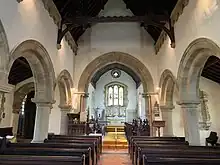 Following demolition, little of the old Norman church was left, apart from the graveyard and a Mortuary Chapel built in 1897.[1] Some evidence of the old church remains; the bases of three Norman pillars are still visible.[1]