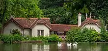 The park has a small lake, St James's Park Lake, with two islands, West Island and Duck Island, the latter named for the lake's collection of waterfowl. At the end of the nineteenth century Duck Island was considered a sufficiently remote location for Scotland Yard to establish a bomb disposal facility there; the resident bird-keeper was given the responsibility of looking after the implements kept for dismantling the devices.[5] It now houses pumps and water treatment machinery for the lake and fountains.[6]