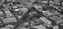 An aerial view showing the church in the centre, taken in 1933. It shows the grounds that were open to the public and maintained by the council after 1923.