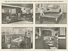 After 1910 St Luke's served its intended purpose as the headquarters of the Anglican Church Mission. The Mission was an evangelistic group which worked amongst the disadvantaged supplying food and shelter for the destitute and saving young girls from moral degradation. It also provided ministering to districts without parishes or churches. It ran several youth clubs, including the Newsboys Club, providing social companionship and spiritual guidance for the members. In 1908 the Overseas Girls Club was founded and later the hall was used as a meeting and recreational venue for the Girls Friendly Society.[1]