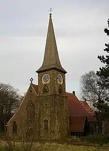 He was vicar of Christ Church, Silloth, Cumbria 1890–1901. He was the Associate Secretary for CCCS for the north-east district 1890–1899.[4] He took up the benefice of St Mark's in December 1901 by exchange with Reverend Humble and remained there until 1905.[78][79] In Huddersfield in 1904 he married Martha Elizabeth Storry (1855–1942).[80][81] In 1905 he became rector of Steeple Gidding, and was there at least until 1908.[4] He then became vicar of Holme, Peterborough, where he stayed until his death. The 1911 Census finds James and Martha living at the 11-room Holme Vicarage with his son Reginald Keith Sowter (b.1897) the son of his first wife Minnie, and a servant.[82] James died aged 62 of heart failure following an operation, on 24 August 1917 at Brighton.[83][84] His wife Martha died in 1942 in Bournemouth, aged 87.[85]