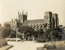 The cathedral in 1930. The spires of the southern towers remained unbuilt until 2000