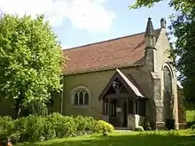 St Mary's is constructed in rubble stone with ashlar dressings, and has tiled roofs. Its plan is simple and consists of a nave with a north porch, and a chancel with a south vestry. On the west gable is a small bellcote. Its architectural style is Gothic Revival. At the corners of the church are diagonal stepped buttresses rising to crocketed finials. On the north side of the nave are two three-light windows, with a two-light window in the north wall of the chancel. The east window has three lights. On the south side of the nave are three three-light windows.[2] All these windows contain simple Perpendicular-style tracery.[4] On each side of the vestry is a flat-headed two-light mullioned window.[2]