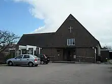 Housing developed near Hampden Park railway station (initially named Willingdon) after it opened in 1888.[3][4] In June 1906, the vicar of Willingdon considered opening a chapel of ease to serve the area. He received support from Freeman Freeman-Thomas, 1st Marquess of Willingdon and his wife Marie: he gave land for the church and she arranged a fundraising concert which added £200 (£22,900 in 2024)[5] to the building fund.[4] The Marchioness laid the first stone of the chapel of ease on 2 May 1908, and it opened in November of that year.[4] Architect William Hay Murray designed a Vernacular-style red-brick, stone and tile building with windows extending above the line of the eaves.[4][6] Born in London, Murray had established an architectural practice in Hastings by 1874 and had apparently moved to Eastbourne by 1894. He designed or altered several Anglican churches in both towns.[7]