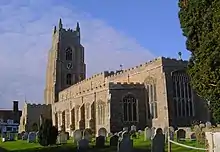 The earliest parts of the church date from the late 13th century or early 14th century and comprise the south porch, St Edmund's Chapel (ca. 1318) and some of the aisle wall. The remainder was rebuilt in the 15th century
