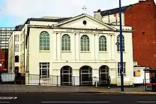 The building itself was first erected in 1726, but was burnt down the 1791 Priestley Riots, which targeted Dr. Joseph Priestley who was the minister at the Unitarian since 1780.[2][3] The Unitarian New Meeting House was rebuilt ten years later and reopened in 1803.[3]
