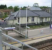 A new footbridge opened in February 2014, providing lifts to the platforms and access to the station from both sides of the track including access to the Love's Farm housing development.[7]