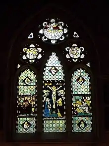 The church is noted for its stained glass by William Morris, Dante Gabriel Rossetti, Ford Madox Brown and Edward Burne-Jones,[3] dating from 1865 and 1866. Rossetti founded the Pre-Raphaelite Brotherhood with which Morris, Brown and Burne-Jones were associated.