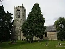 Three headstones in the churchyard are Grade II listed.[4] Dated 1729, 1738 and 1731, they are made from ashlar and bear the following inscriptions: