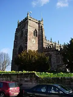 St Oswald's Church stands on the highest point in the market town of Malpas, Cheshire, England,[1] on or near the site of a Norman motte and bailey castle.[2] The church is recorded in the National Heritage List for England as a designated Grade I listed building and is recognised as being one of the best examples in Cheshire of a late 15th to early 16th-century church.[3] It is an active Anglican parish church in the diocese of Chester, the archdeaconry of Chester and the deanery of Malpas. Its benefice is combined with those of St John, Threapwood, and Holy Trinity, Bickerton.[4] Alec Clifton-Taylor includes it in his list of 'best' English parish churches.[5]