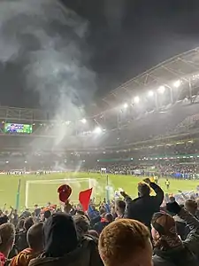 On 24 October 2018 it was announced that Harry Kenny (who had been assistant manager in the 2013 league-winning campaign) would be the new manager of the club, signing a two-year contract.[27] His new signings ahead of the 2019 season were Gary Shaw, David Webster, Ciaran Kelly, Cian Coleman, Georgie Poynton, Brandon Miele, Michael Drennan, Rhys McCabe and old fan favorite Chris Forrester, stating that his aim was to get the club back competing in European competition.[28] Kenny's first competitive game in charge of the Saints was on 15 February 2019, a 1–0 opening-day victory over league runners-up Cork City at Richmond Park, with the game attracting the biggest attendance at a domestic game since October 2010.[29] This was followed by a sell-out against rivals Shamorck Rovers on 8 March.[30] On 25 April 2019 it was announced that the club had been awarded a licence to compete in UEFA Europa League action for the 2019–20 campaign ahead of Waterford, who had finished one place ahead of Pats in fourth place the previous season, but were not awarded a licence due to their club reforming in late 2016 and thus breaking UEFA's 'three-year rule'.[31] Pats drew IFK Norrköping of Sweden and were beaten 2–0 at home and 2–1 away, knocking them out at the first hurdle.[32] With the team scoring just 24 goals in 29 games and attendances steadily dropping, fans became restless with Kenny and after a shock cup exit to UCD on 23 August 2019,[33] Kenny resigned by mutual consent the following day.[34]