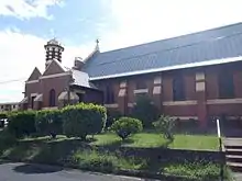 Anglican church services commenced in East Brisbane in 1887, when a curate from St Mary's, Kangaroo Point, began conducting services in a building owned by Charles Ewbank called "The Grange" (now 17 Didsbury Street) from 14 January 1887.[4] A site was acquired on the corner of Vulture and Edgar Streets (559 Vulture Street East, 27°29′12″S 153°02′56″E / 27.4867°S 153.0490°E),[5] where a timber church, also initially used for Sunday School, was opened 1 December 1887. From 1889 St Paul's was serviced by priests from Holy Trinity parish at Woolloongabba before returning to St Mary's parish in 1895. St Paul's was then serviced by the Church Mission until 1921, when it was raised to "parochial district" status.[1][6][7]