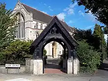 St Stephen's Parish Church, Bush Hill Park; the luchgate seen from Park Avenue