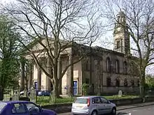 St Thomas' Church is in St Thomas's Place, Wellington Road South, Stockport, Greater Manchester, England. It is an active Church of England church in the parish of Stockport and Brinnington, in the deanery of Stockport, the archdeaconry of Macclesfield, and the diocese of Chester.[1] The church is recorded in the National Heritage List for England as a designated Grade I listed building.[2] It was a Commissioners' church, having received a grant towards its construction from the Church Building Commission.[3]