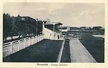 History of football in Mirandola began on 15 March 1911, when the "Foot-Ball Club Giovanni Pico" was founded, which asked the municipal administration for the concession of a plot of land of about 3 biolche (9,000 square metres (11,000 sq yd)) placed in the 9<up>th</up> trunk Spalti in order to build a sports field. However, the land was leased, so the first playing field was built on the side of the west ring road. This first football experience ended, however, with the outbreak of the First World War.[2]
