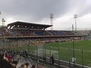 Before the 2002–03 season, also due to the reduced number of fans following the poor form of the team, long reduced to yo-yoing between Serie A and B, the stadium was restructured again. Over the athletics track, a new stand was built, behind the goals so as to reduce the distance between the terrace and the playing field, with the central terraces remaining intact. The new format of the stadium, which almost halved its maximum capacity to 23,486 seats, came under harsh criticism.