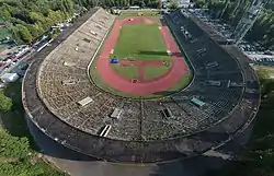 Falling further into disrepair, the stadium was forced to close due to safety concerns in October 2019, and the seating area began to sprout weeds.[1] The athletics track is still in use, as are the other facilities.