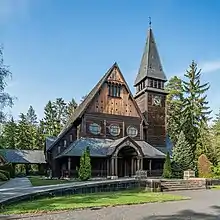 The Stahnsdorf South-Western Cemetery (German: Südwestfriedhof Stahnsdorf der Berliner Synode) is a Protestant rural cemetery in Germany. Established in 1909, the cemetery is located in the municipality of Stahnsdorf in Potsdam-Mittelmark district, Berlin/Brandenburg Metropolitan Region. With a land area of approximately 206 ha, it is the largest church-owned Christian cemetery in Germany, as well as being the tenth largest cemetery in the world and Germany's second largest cemetery after Hamburg's Ohlsdorf Cemetery.[1] The cemetery is operated by the administration of the Berlin City Protestant Synod Association.[2] Due to its status as one of the most important landscape parks in the Berlin metropolitan area, along with the large amount of historically valuable tombs and other buildings which include the landmark wooden chapel, the cemetery was designated as a place of special importance and a protected area by the state of Brandenburg in 1982.