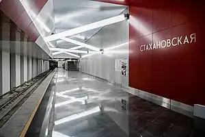 Stakhanovskaya is a station on the Nekrasovskaya line of the Moscow Metro. The station was opened on 27 March 2020.[2] The station is named for Stakhanovskaya Ulitsa, which, in turn, is named for Alexey Stakhanov, a coal miner who was named a Hero of Socialist Labour.