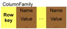 The standard column family is a NoSQL object that contains columns of related data. It is a tuple (pair) that consists of a key–value pair, where the key is mapped to a value that is a set of columns. In analogy with relational databases, a standard column family is as a "table", each key–value pair being a "row".[1] Each column is a tuple (triplet) consisting of a column name, a value, and a timestamp.[2] In a relational database table, this data would be grouped together within a table with other non-related data.[3]