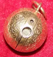 A stanhope or stanho-scope is an optical device that enables the viewing of microphotographs without using a microscope.[1][2] They were invented by René Dagron in 1857.[1] Dagron bypassed the need for an expensive microscope to view the microscopic photographs by attaching the microphotograph at the end of a modified Stanhope lens.[1] He called the devices bijoux photo-microscopiques or microscopic photo-jewelry.[3]