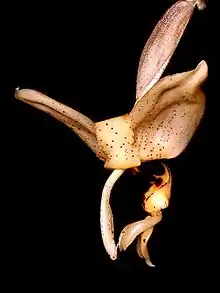 Stanhopea nigripes is a species of orchid endemic to Peru.