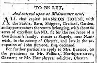 In 1798 his daughter Catherine married William Harwood Folliott, a merchant from Chester. When John Burscoe died in 1809 Catherine as his only heir inherited Stapeley House.[8]